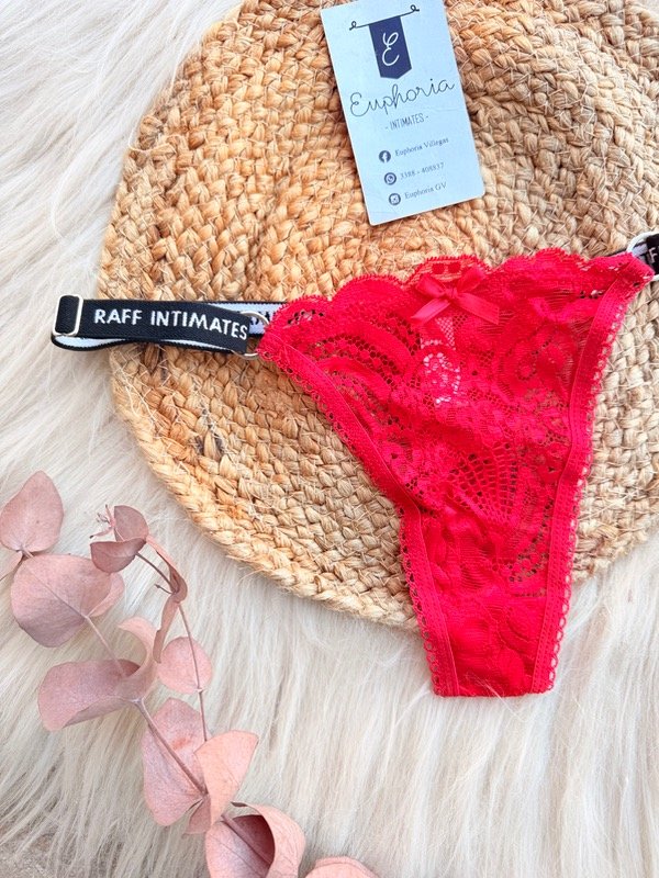 Less de encaje, tiras regulables anchas elástico raff, color rojo. Talle único.
