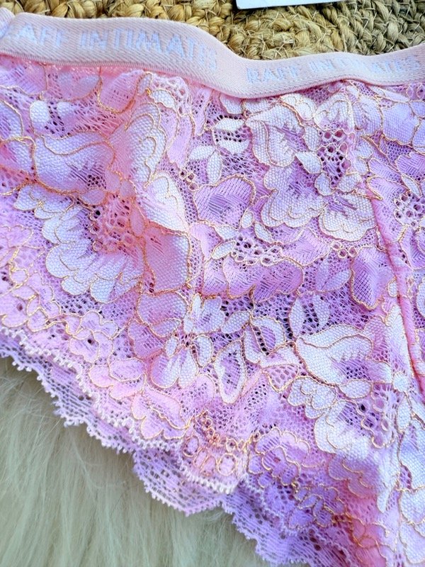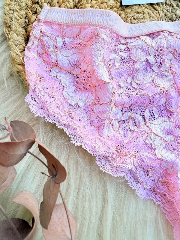 Vedetinas de encaje, talle S. Chico. De encaje con Lurex dorado color rosa.