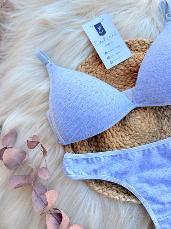 Conjunto taza Soft, sin aro, de algodón. Viene con less clásica en combinación. Color Gris.