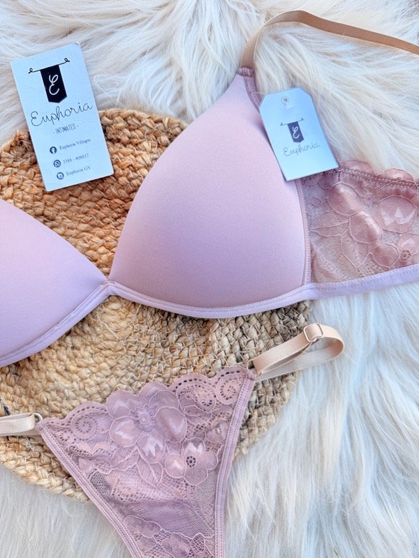 Conjunto de Microfibra con encaje a sus costados.