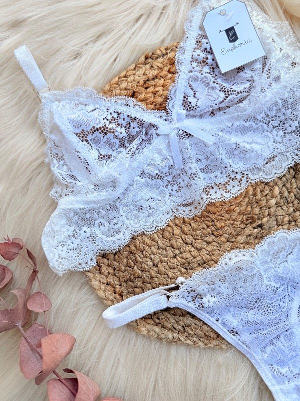 Conjunto de encaje, con corpi tipo top, viene con less regulable en combinación